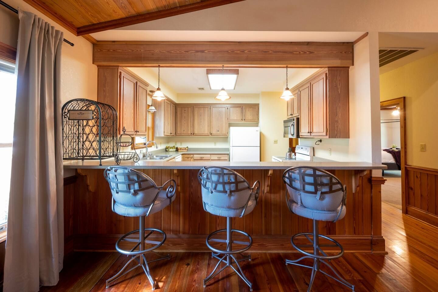 Now this is 'glamping' at its best! This two bedroom retreat is fully handicapped accessible with a ramped entrance and features beautiful hardwood flooring throughout and an open floor plan with a fully equipped galley kitchen and bar seating, a dining and living room area. The Slater King Cottage has a magnificent view of Sherrod Manor, the 19th century mansion that is the centerpiece of Resora.